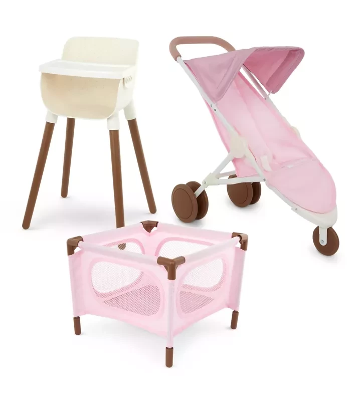 Give babi dolls a lovely place to dream and play with the babi doll nursery playset, including a portable playpen, cute high chair, jogger stroller, and a 14-inch newborn babi girl doll to care for and love.