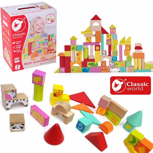 Classic World – Wooden Multi Activity Blocks – 100 Piece