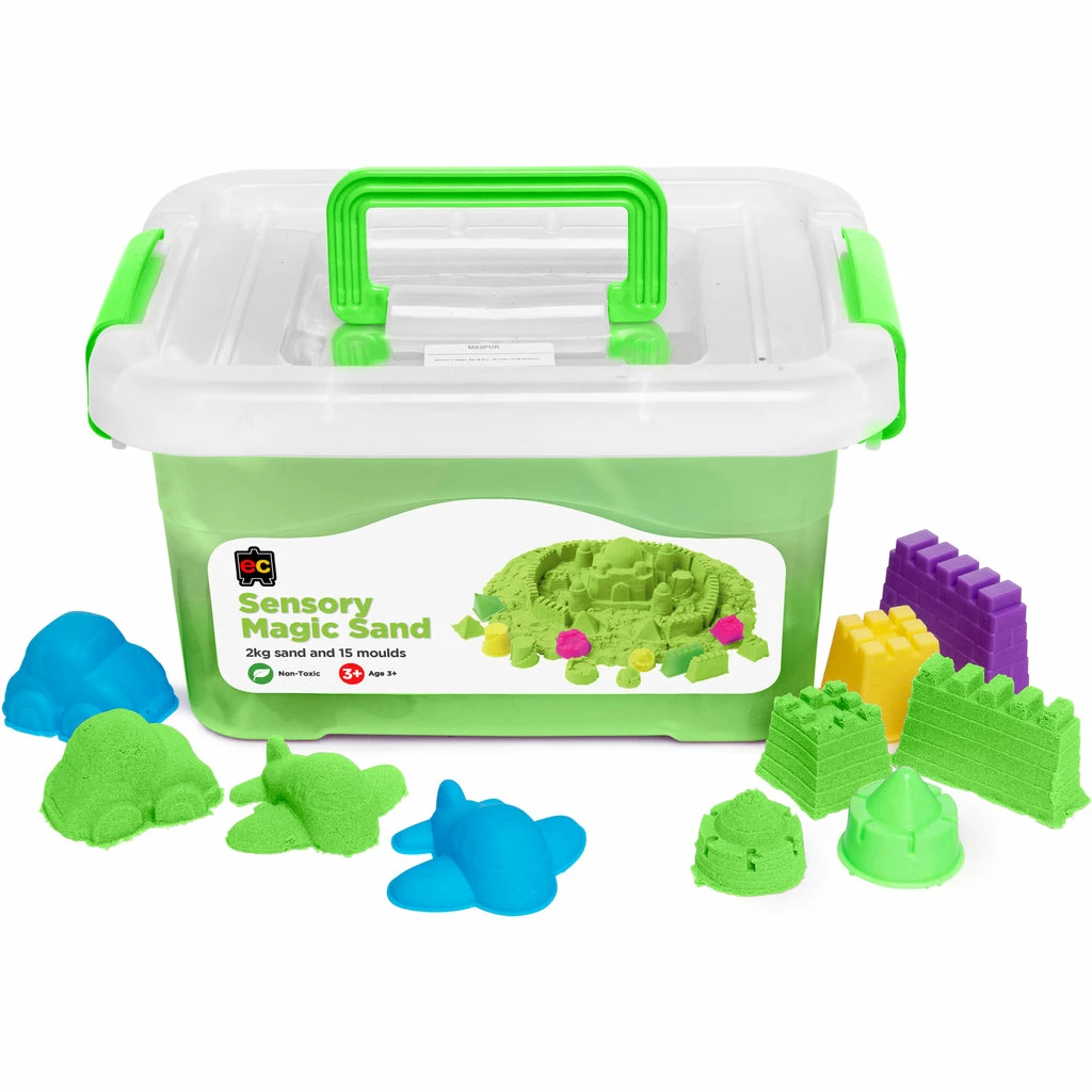 Edvantage EC – Sensory Magic Sand With Moulds 2Kg Tub Green
