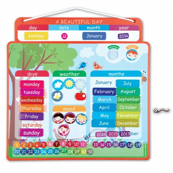 What a beautiful day! A magnetic calendar that hangs for convenience and has 68 pieces to help teach your kids days, months and years.