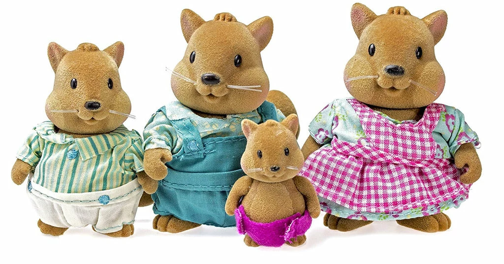 This toy set comes with four squirrel characters: Mom Maggie, Dad Oliver, and kids Henry and Honeybun.
