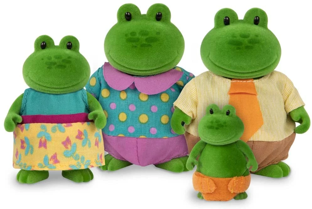 Meet the Croakalily Frog Family from Honeysuckle Hollow! This family set includes four animal characters to add to your Li’l Woodzeez collection: Mom Libby, Dad Rob, and kids Hip and Hop. They live at Honeysuckle Hillside Cottage, a beautiful house with flower baskets and a porch swing! These fuzzy mini figurines have soft fur and they fit in the smallest hands. Their outfits are compatible with the other animal characters from Honeysuckle Hollow, so you can mix and match for a fun try-on session! You can also move their heads, arms, and legs – perfect for hours of playtime. All they need is a bit of imagination to come alive! Li’l Woodzeez