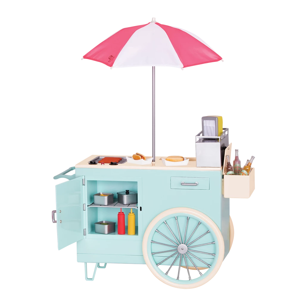 The perfect snack-stop for the boardwalk, the beach, or the ballgame, this hot dog cart is dishing out all kinds of delights!