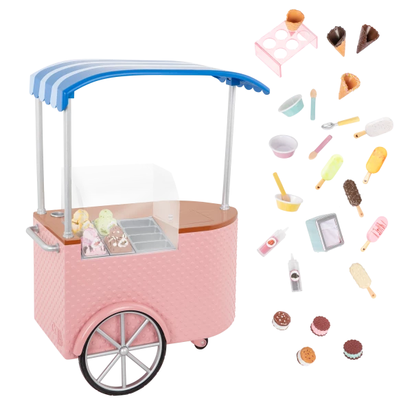 Scoop and serve your favorite treats with the Our Generation Two Scoops Ice Cream Cart playset for 18-inch dolls!