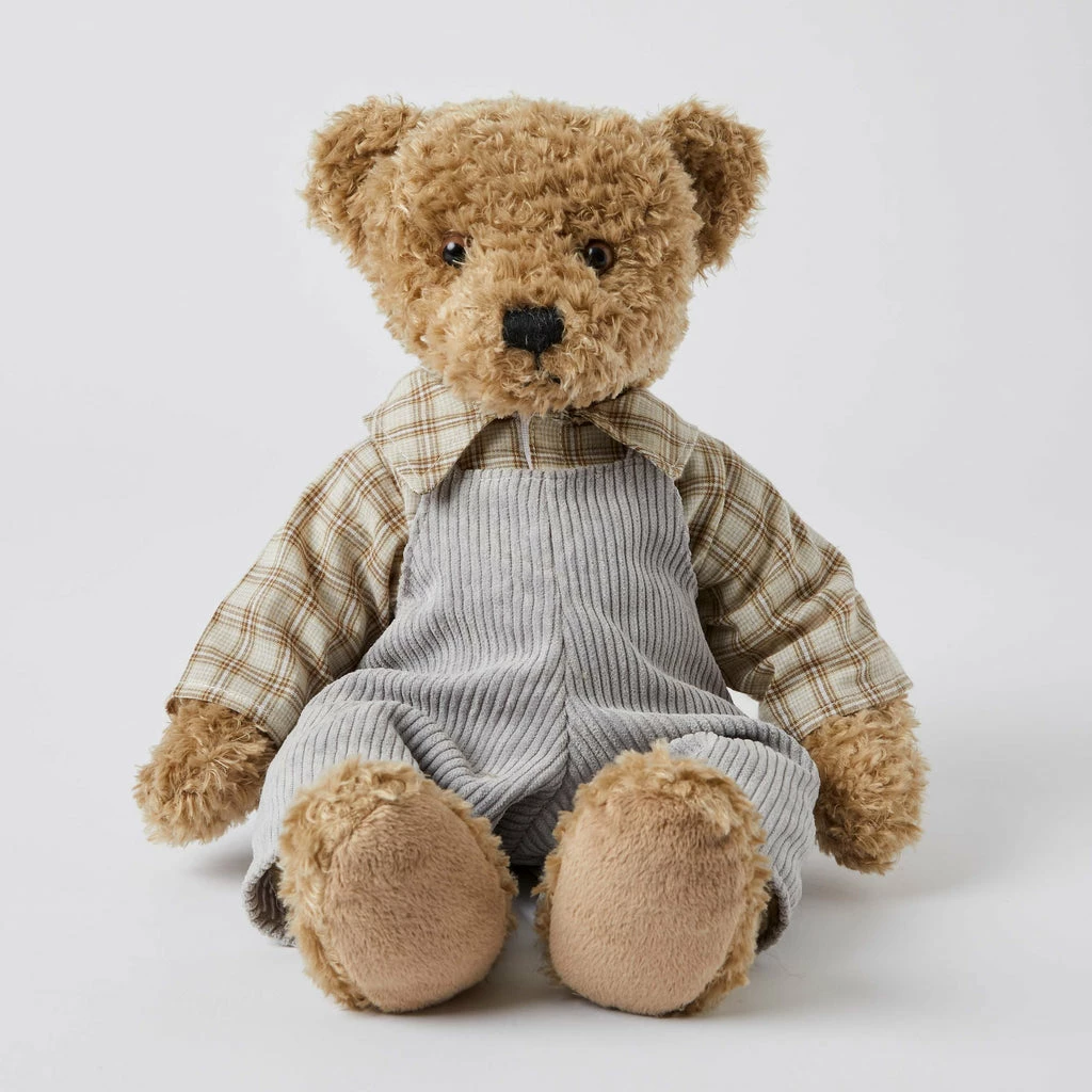 Chester is wise and always gives the best advice! Often referred to as “Papa” bear, he wears a grey corduroy overalls and woven check shirt. Chester is made from premium quality plush faux fur fabric.