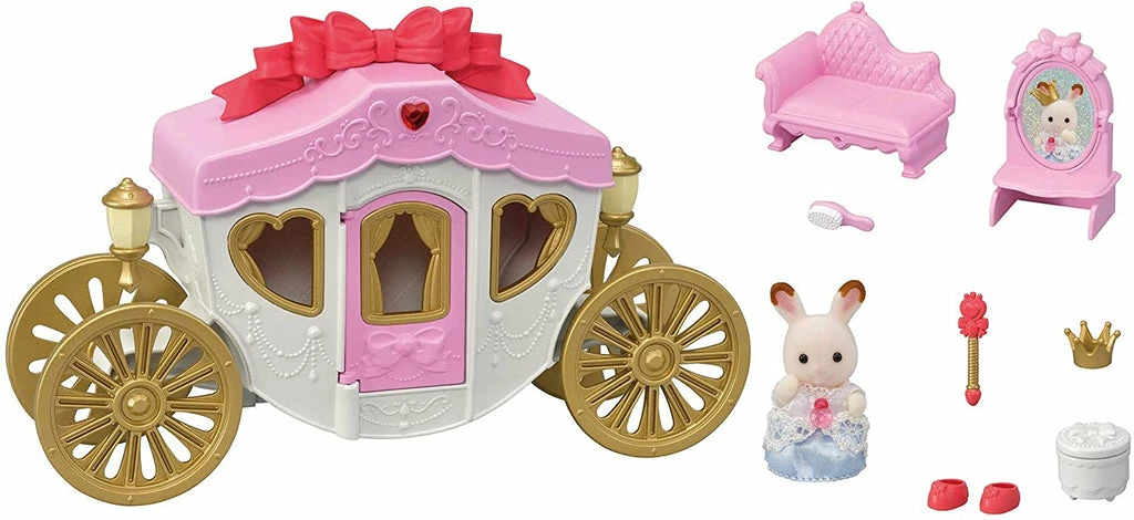The Royal Carriage Set has a lovely room in the carriage for playing princess. The all-in-one set comes with a carriage room furniture accessories and a figure. Combine with the Baby Amusement Park Baby Star Carousel Spooky Surprise House and Baby Costume Series and other figures for even more enjoyable amusement park play (all sold separately).