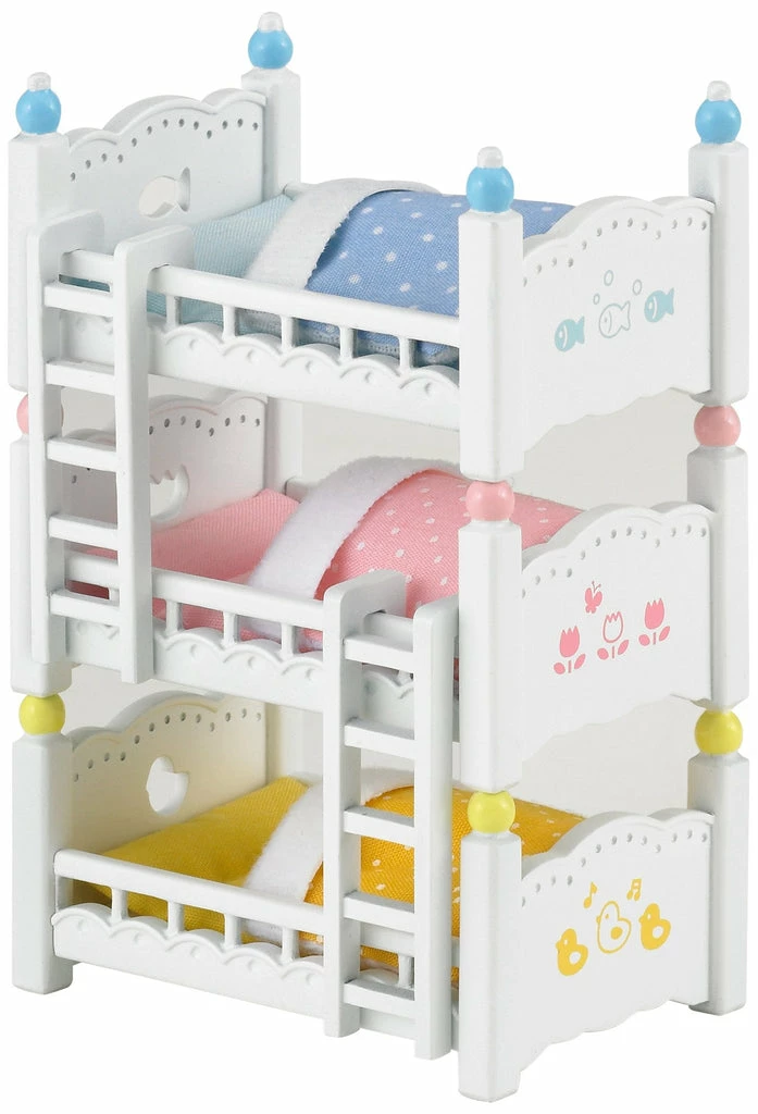 The Triple Bunk Beds set can be stacked on top of each other or placed side by side. Each bed has a cosy blanket, a comfy mattress and pillow.